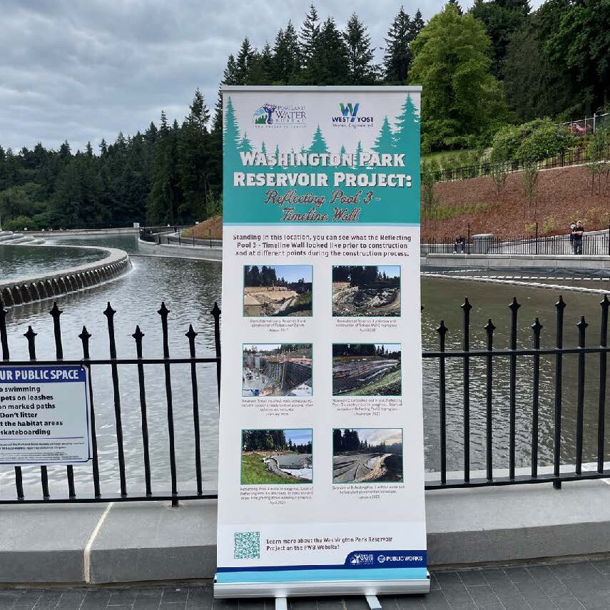 Working for the Portland Water Bureau, our team provided full engineering services during construction for the reservoir replacement. The site presented multiple challenges: it was historic, seismically sensitive, tightly constrained, and located in a highly visible public park. West Yost’s role included reviewing contract documents for consistency, designing critical project elements not originally included, and supporting constructability. Notably, we redesigned intake and outlet piping to accommodate severe site constraints, rerouting piping through the reservoir and under an existing dam using bore-and-jack installation. This redesign reduced trenchless installations from four to three, saving the client over $1 million.